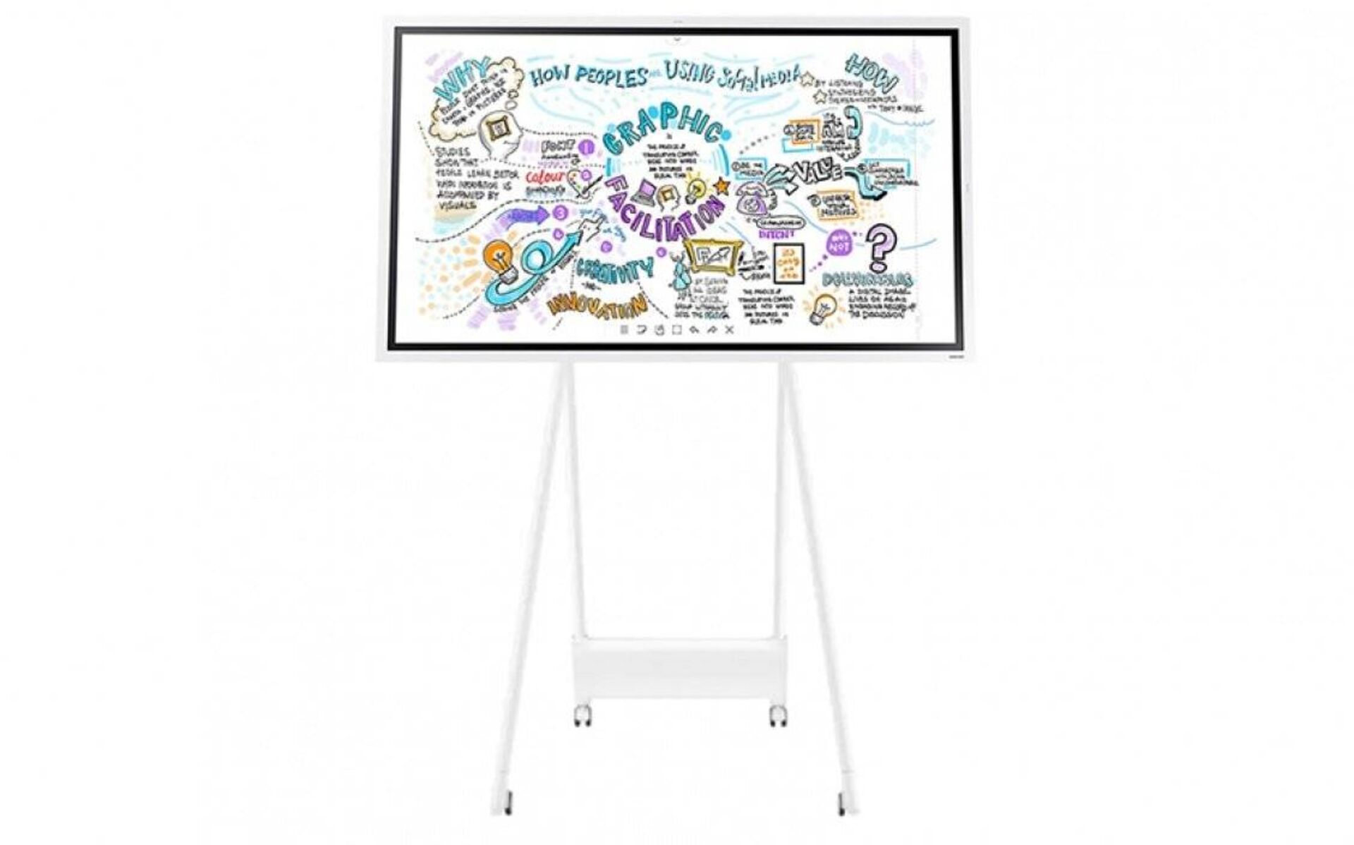 Le Samsung Flip 2 est disponible en 55 et 65 pouces. Il peut à la fois être installé sur pied mobile ou accroché au mur. Cela permet de l’adapter à vos méthodes de collaboration. Par exemple, si vous aimez collaborer un peu partout dans l’entreprise, l’écran interactif sur pied mobile vous permettra de travailler n’importe où.